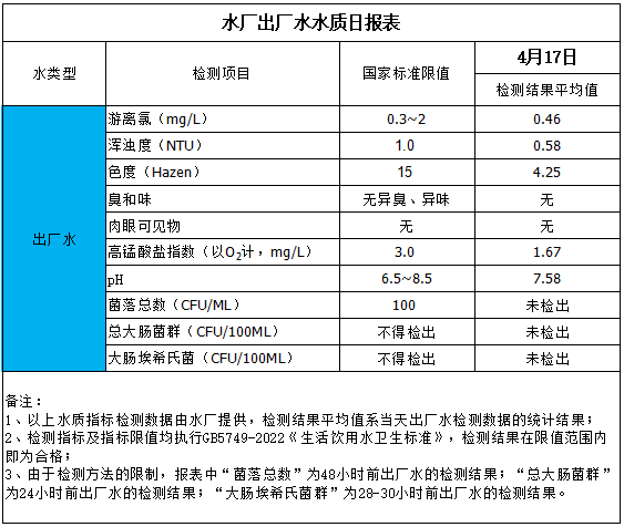 水廠出廠水水質(zhì)日?qǐng)?bào)表(2025-4-17)