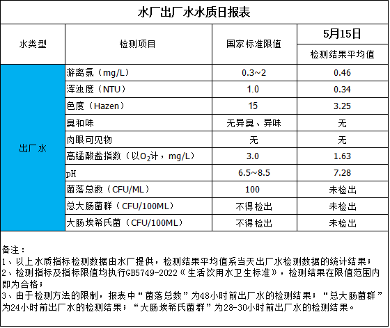 水廠出廠水水質(zhì)日?qǐng)?bào)表(2025-5-15)