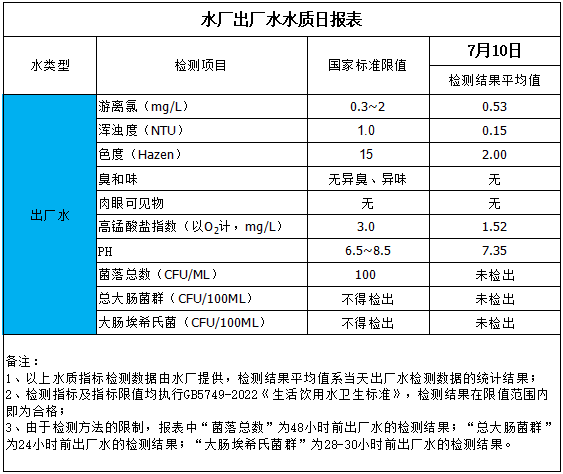 水廠出廠水水質(zhì)日報表(2025-7-10)