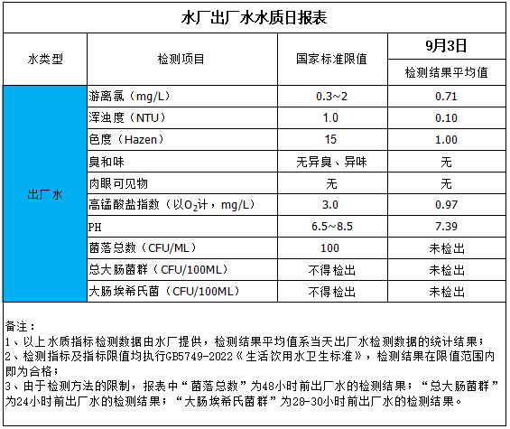 水廠出廠水水質(zhì)日報表(2025-9-3)