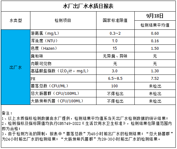 水廠出廠水水質(zhì)日?qǐng)?bào)表(2025-9-18)