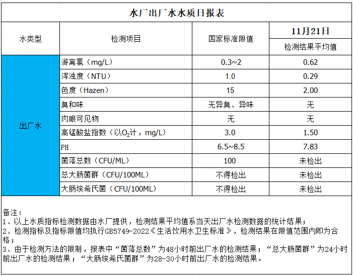 水廠出廠水水質(zhì)日報表(2025-11-21)
