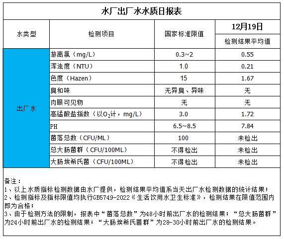 出廠水水質(zhì)日?qǐng)?bào)表(2025-12-19)