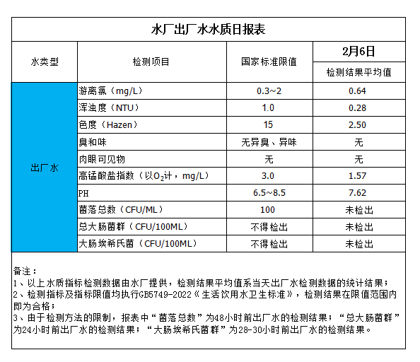 水廠出廠水水質(zhì)日報表(2024-2-6)