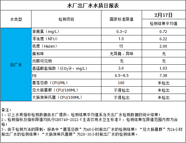 水廠出廠水水質(zhì)日報表(2024-2-17)