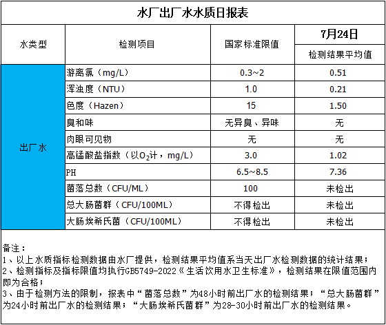 水廠出廠水水質(zhì)日報表(2024-7-24)