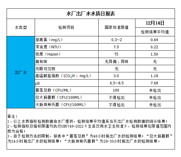 水廠出廠水水質(zhì)日報表(2024-12-14)